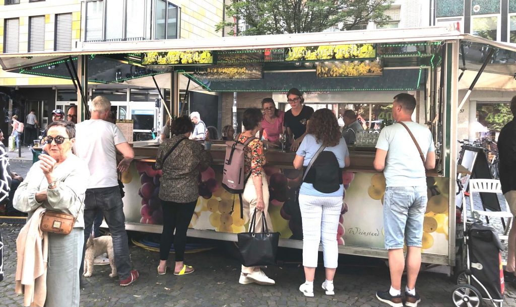 Unser Weinwagen ist seit 2015 im Einsatz. Bei uns trinken Sie die guten Weine vom Familienweingut Finkenauer aus Bubenheim in Rheinhessen, den leckeren Blanc de Noir, Rosé, Sekt und Traubensaft der Weinmanufaktur Dagernova an der Ahr sowie den leckeren Elbling und Auxerrois vom Weingut Frieden-Berg aus Nittel an der Südmosel.